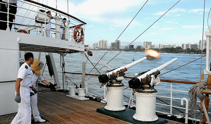 Commanded by Captain Roberto Ariel Gestoso, the Argentine Navy Training Ship made 21 salutes at the time of passing the breakwater at the entrance to the Ozama River in Santo Domingo, capital of this Caribbean country.