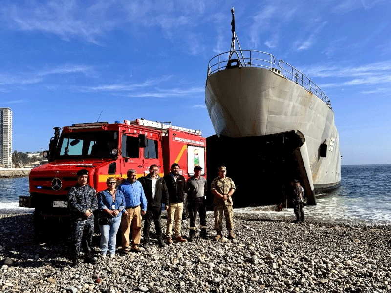 Once the material was delivered, the Mayor of Juan Fernández, Pablo Manríquez, indicated that “together with the neighbors we are very happy, because the truck of first attack is already there, the bomb car, the first in the history of our community that arrived through the barge ‘Chacabuco’ of the Chilean Navy.”
