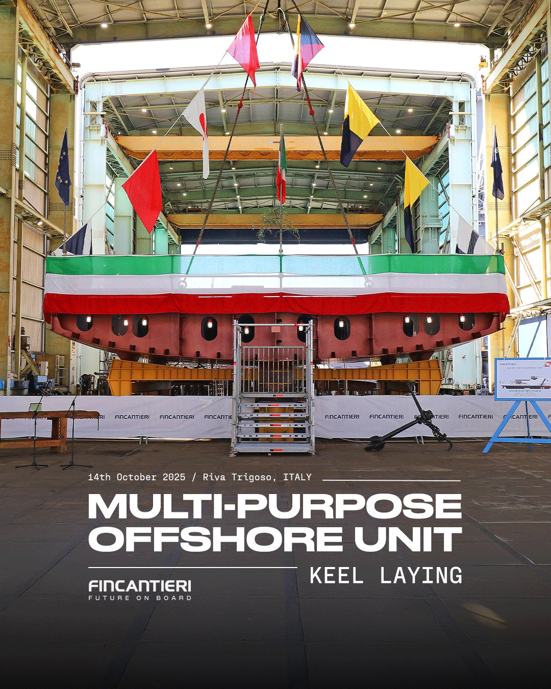 At the Riva Trigoso shipyard, Fincantieri held the keel laying ceremony for the new Multi-purpose Offshore Unit (UAM), marking a key milestone in our collaboration with the Italian Coast Guard and transforming our expertise into tangible value for the country and the safety of our seas.