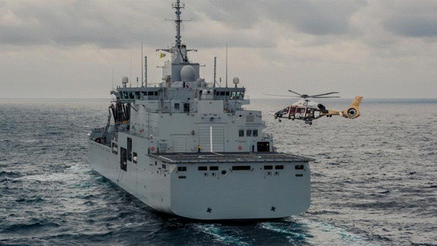 On 16 January, for the first time, Prototype No. 1 participated in an interaction of opportunity with the Force Replenishment Ship (BRF) Jacques Stosskopf, marking its first contact with a Naval Action Force unit. The H160M flew in an armed configuration in the vicinity of the BRF without landing. The objective was to subject the helicopter’s sensors to the magnetic disturbances generated by a vessel the size of the BRF.