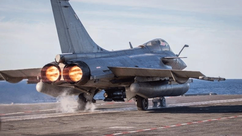 Catapult launch of a Rafale Marine armed with a 1000 kg AASM missile – © French Navy