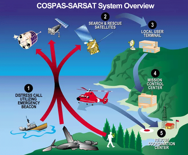 When an emergency distress beacon is activated, NOAA satellites relay its signal to a network of ground stations and ultimately to the U.S. Mission Control Center (USMCC) in Suitland, Maryland. From there, the information is quickly sent to Rescue Coordination Centers, operated either by the U.S. Air Force for land rescues, or the USCG for maritime rescues.
