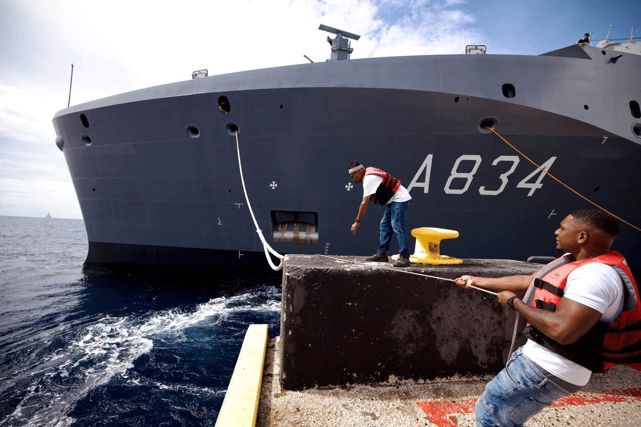 The Combat Support Ship HNLMS Den Helder arrived in Curaçao October 20. The navy’s newest acquisition will be in the Caribbean for warm-weather trials until mid-next month.