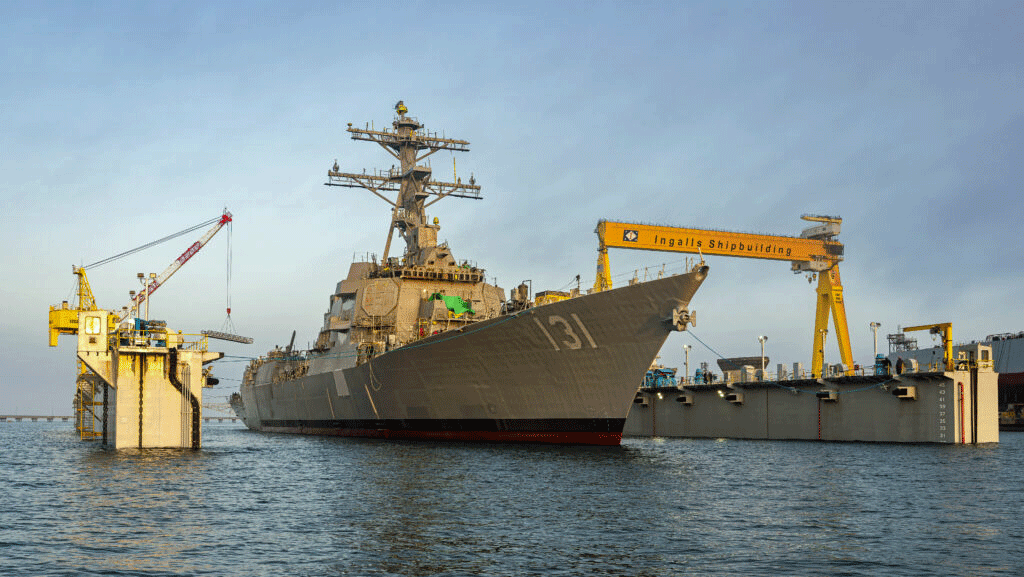 “Launching DDG 131 is a direct reflection of the hard work and dedication of our Ingalls shipbuilders,” said Chris Brown, Ingalls Shipbuilding DDG 51 program manager. “Seeing the ship reach the water for the first time is a proud moment for everyone involved and a real testament to the people who make this work possible for our U.S. Navy.”