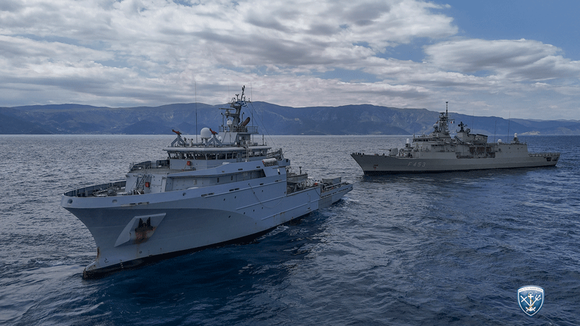 On Tuesday, April 29, 2025, a joint PASSEX (Passing Exercise) training of the Frigate (F/G) SPETSAI was conducted with the General Support Ship (GSS) SEINE of the French Navy.