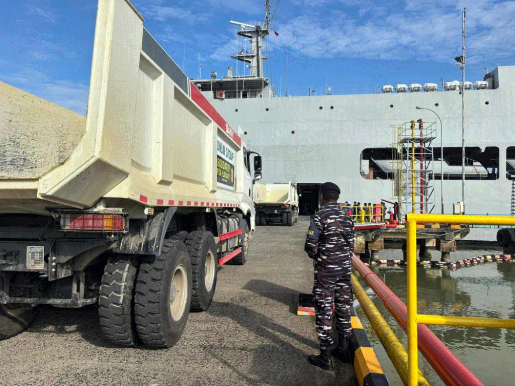 Meanwhile, the Commander of KRI Makassar-590 Lieutenant Colonel (P) Farid Ardiansyah, M.Tr.Opsla explained that the Landing Platform Dock (LPD) type warship docked at Lanal Kotabaru to carry out the embarkation of heavy equipment assistance in the form of excavators and dump trucks from PT Jhonlin Group. The aid will be sent to flood-affected areas in Aceh to accelerate infrastructure and environmental recovery.