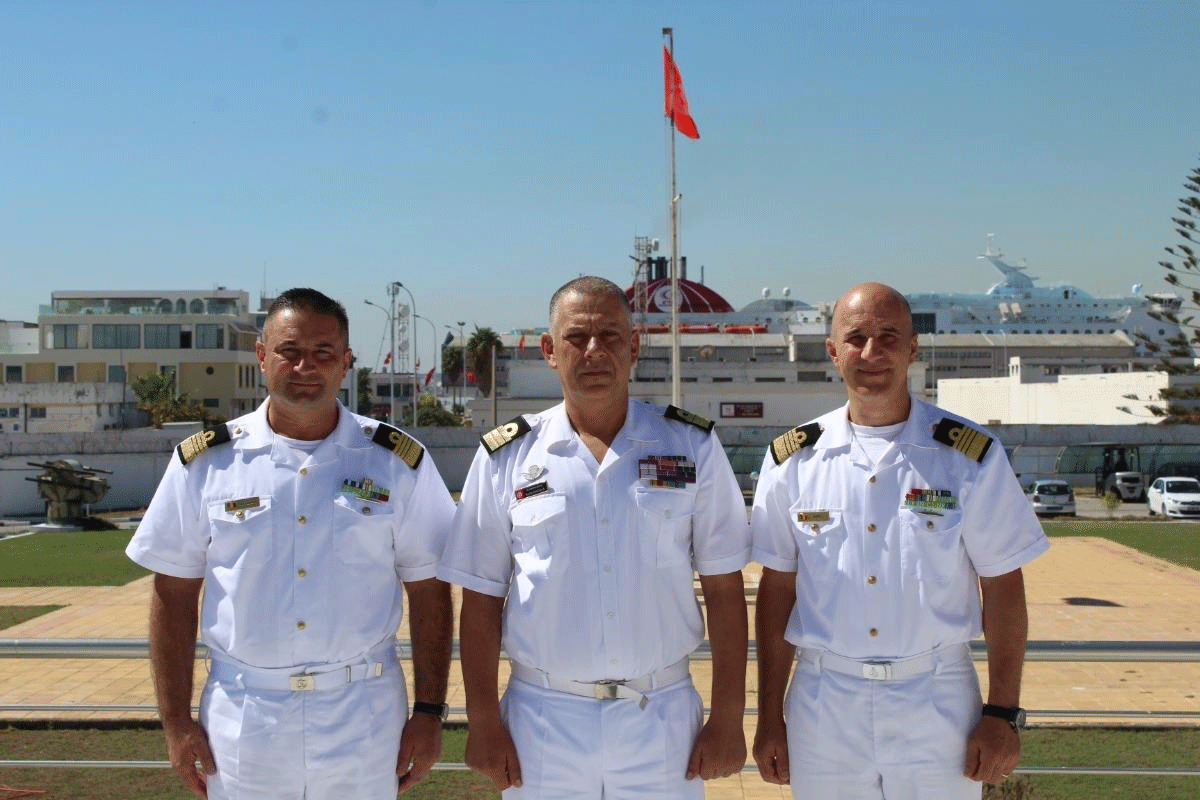 While alongside in Tunis, Captain Durea and the Commanding Officer of the Regina Maria, Captain Mitel-Laurențiu Alexandru, were hosted by Tunisian Navy Commodore Ketib Khouja, the commanding officer of the La Goulette Naval Base. The ship’s crew experienced Tunisian culture and hosted a VIP luncheon on board the flagship. The crew of ROS Regina Maria also took the opportunity in Tunis to bring on supplies and refuel their ship before heading back to sea.