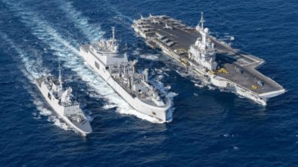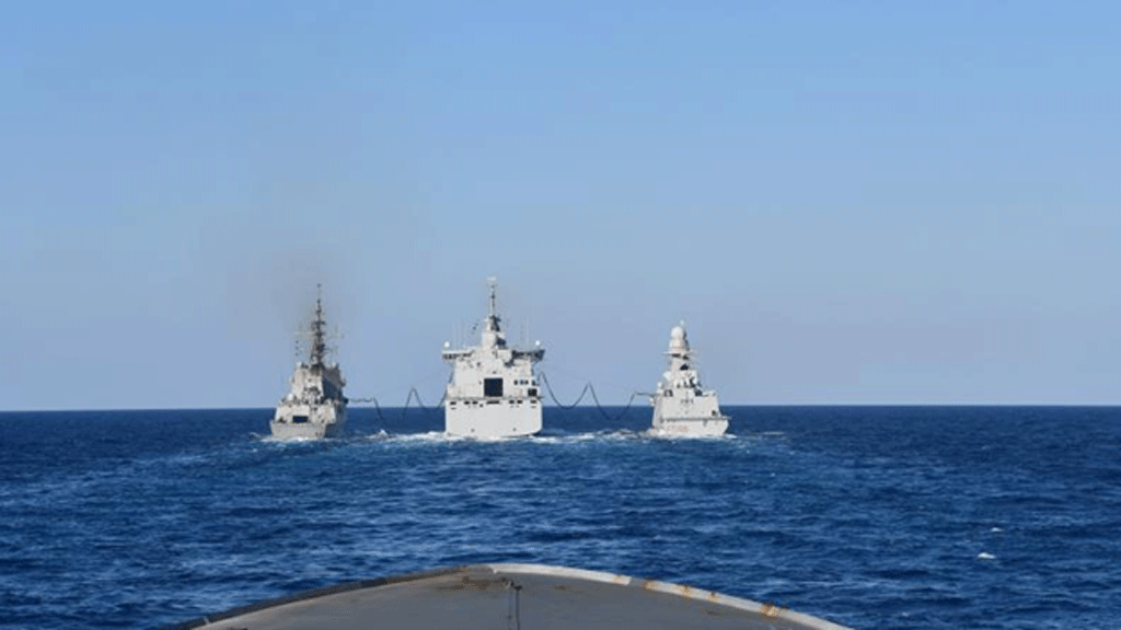 The day continued with a series of refueling operations involving several ships of Allied navies integrated into the carrier strike group: the Spanish frigate Cristóbal Colón, the Italian FREMM Martinengo, but also French frigates.
