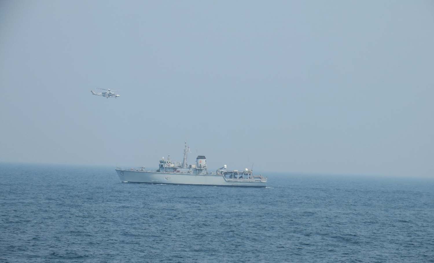 The guided-missile frigates Dali (Hull 553) and Chenzhou (Hull 552) attached to a naval frigate flotilla under the Chinese PLA Southern Theater Command conduct double-banking operations at sea during a training exercise in middle May, 2025. (eng.chinamil.com.cn/Photo by Cai Shengqiu)