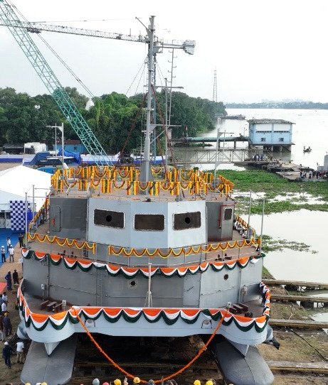 The launch of ‘DSC A 22’ the third ship of 05 x Diving Support Craft (DSC) project, being built by M/s Titagarh Rail Systems Ltd (TRSL), Kolkata for Indian Navy, was undertaken on 12 Sep 2025 at Titagarh, Kolkata (WB). The Launch Ceremony was presided over by Vice Admiral Suraj Berry, Commander-in-Chief. In keeping with the Naval maritime tradition, Mrs Kangana Berry launched the ship.